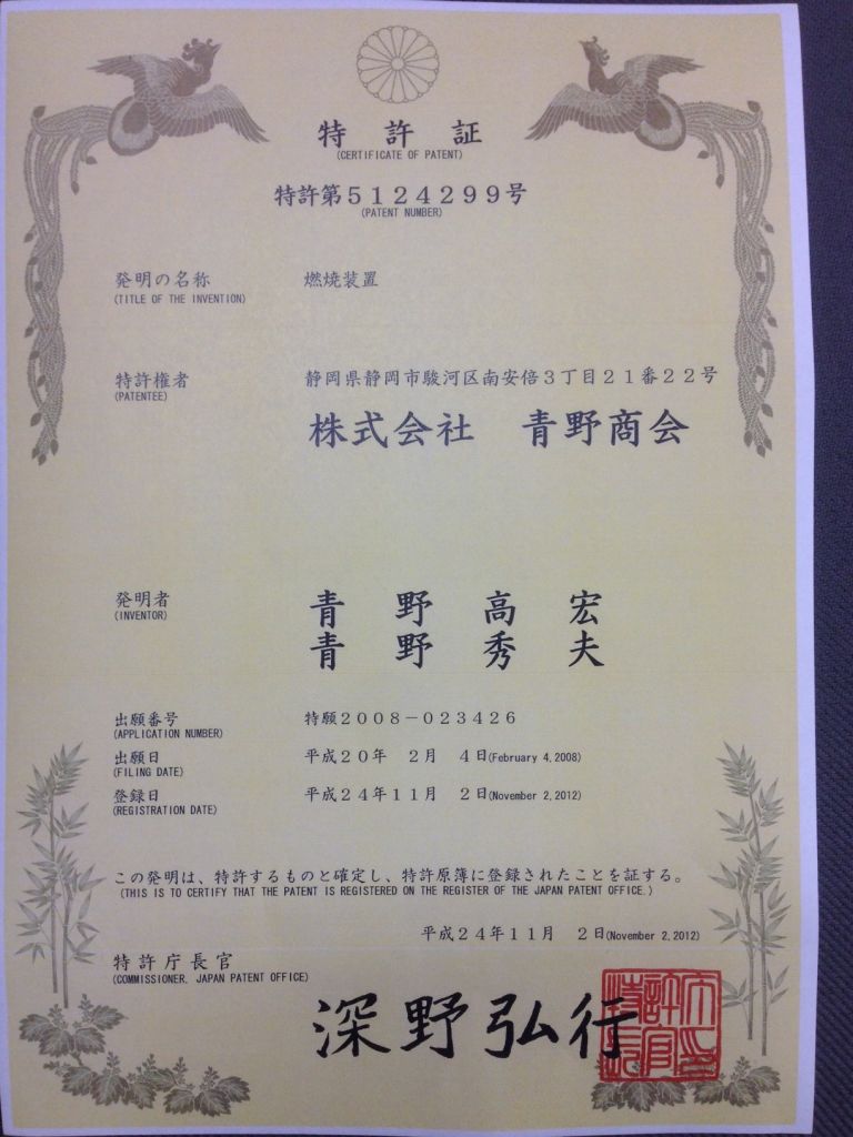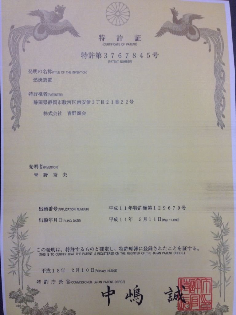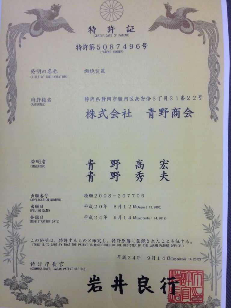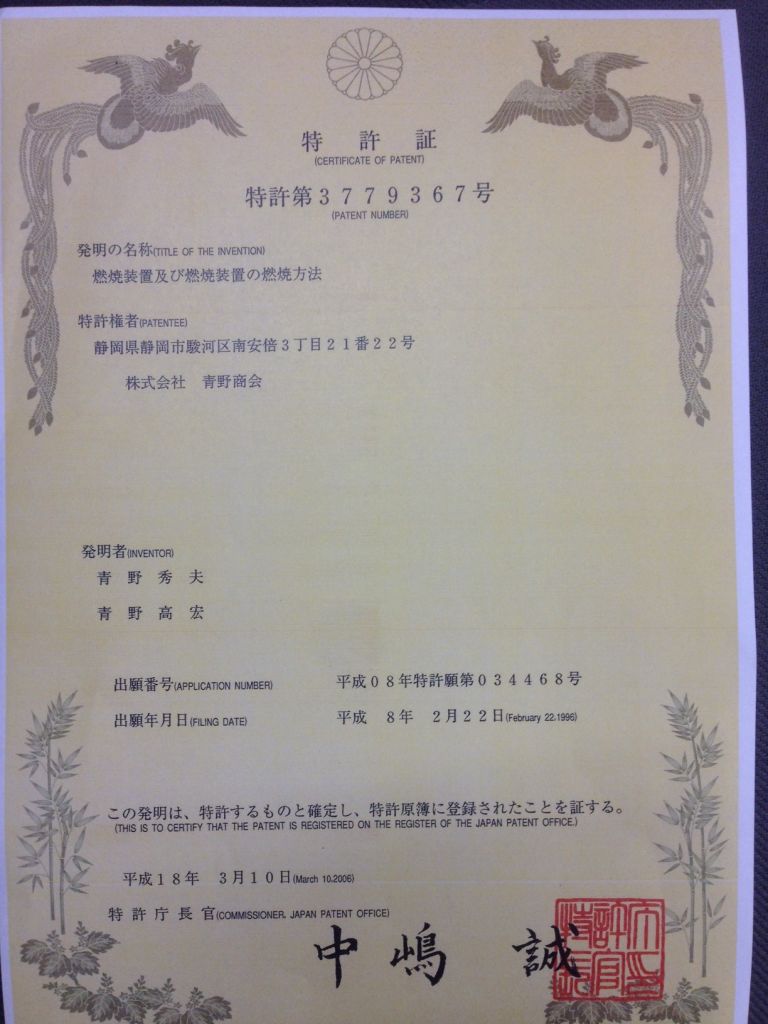 17/05/1996 Patent Aono Shokai Company has 12 patents granted by the Ministry of Science and Technology of Japan. In the Vietnamese market, Aono Shokai Company authorizes “BVIC Vietnam Joint Stock Company” to use patents and execute projects in Vietnam.